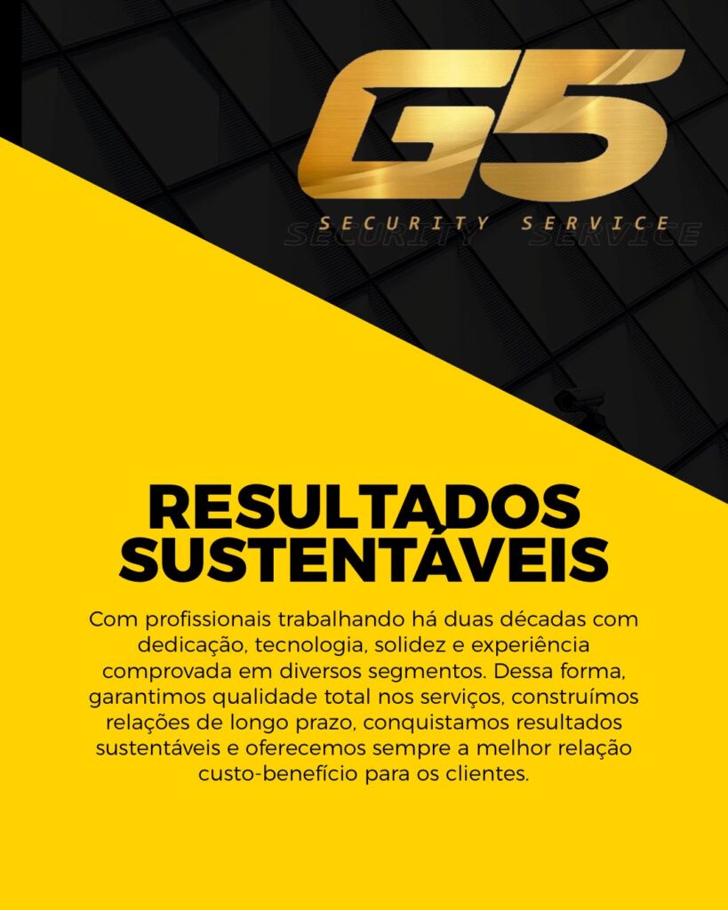 A G5 Security Service é referência em proteção, tecnologia e terceirização de serviços, com mais de 20 anos de experiência no mercado. Atuamos com equipes altamente treinadas e soluções personalizadas para garantir segurança, eficiência e tranquilidade aos nossos clientes.